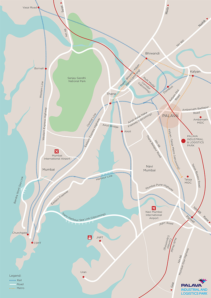 Strategically located near the industrial heartland of Navi Mumbai – Taloja MIDC, it offers maximum proximity via waterway, roadway, and airway. And the high-potential location is well-connected to major consumption hubs around Mumbai.